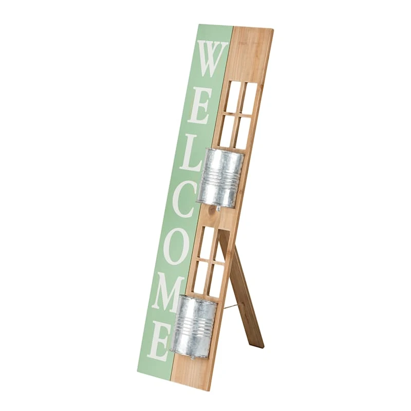 2-Bucket Welcome Planter Outdoor Porch Sign, 36"