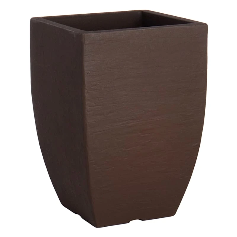 Our weatherproof polyresin tall square planter is contemporary in its look and will quickly become your new favorite. One of our most versatile designs, this coffee brown planter will be comfortable at a mid-mod ranch, an urban condo or a modern loft. The 100% plastic pot allows for an elevated, intriguing display. With durable construction, this planter is designed to withstand extreme weather, and made to last.