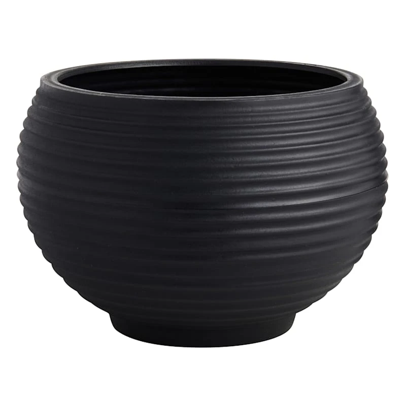 Add a touch of architectural interest to your patio plantings with our polyresin Lattice bowl planter. More than just a spot to display your gardening skills, this wonderful solid lead color planter offers a sleek contemporary appearance with its curved shape and ribbed concrete look. Designed to live indoors or out, it’s ready and waiting to make your plants pop.