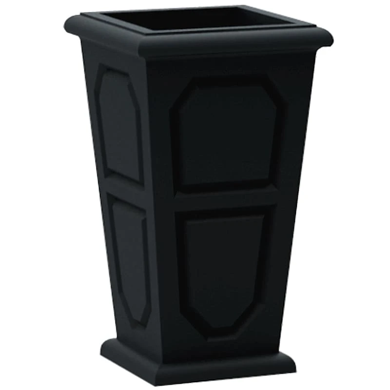 Highlight your green thumb and showcase your annuals and perennials at your front door or add a touch of festive foliage to your covered deck with our stylish 18x34in. lead black Versailles polyresin square planter. More than just a spot to display your gardening skills, this solid color tall pot offers a simple, traditional appearance with its wonderful rimmed plastic design. Created to live indoors, outdoors or in a covered outdoor space, it’s ready to make your plants pop.