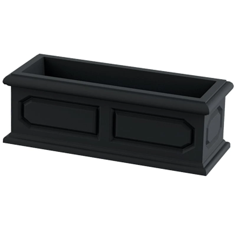 Highlight your green thumb and showcase your annuals and perennials at your front door or add a touch of festive foliage to your covered deck with our stylish 10x30in. lead black Versailles polyresin window box planter. More than just a spot to display your gardening skills, this solid color elongated pot offers a simple, traditional appearance with its wonderful rimmed plastic design. Created to live indoors, outdoors or in a covered outdoor space, it’s ready to make your plants pop.