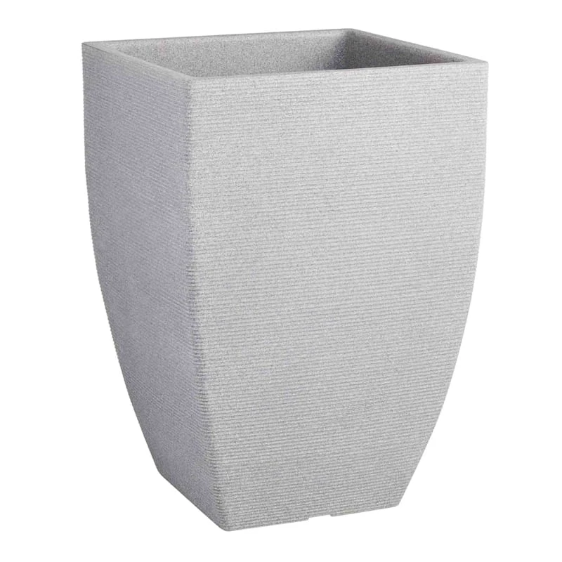 Highlight your green thumb and showcase your annuals and perennials at your front door or add a touch of festive foliage to the deck with our simple yet stylish planter. More than just a spot to display your gardening skills, this wonderful 21in. Linea sandstone square pot offers a wonderful artistic appearance with its natural hued surface and mini striated stripe motif. Designed to live indoors or on a covered patio, this plastic planter is ready and waiting to make your plants pop.