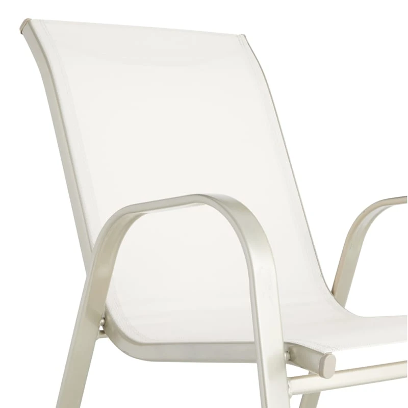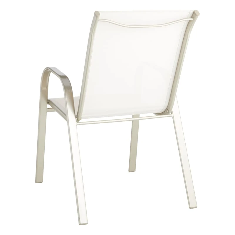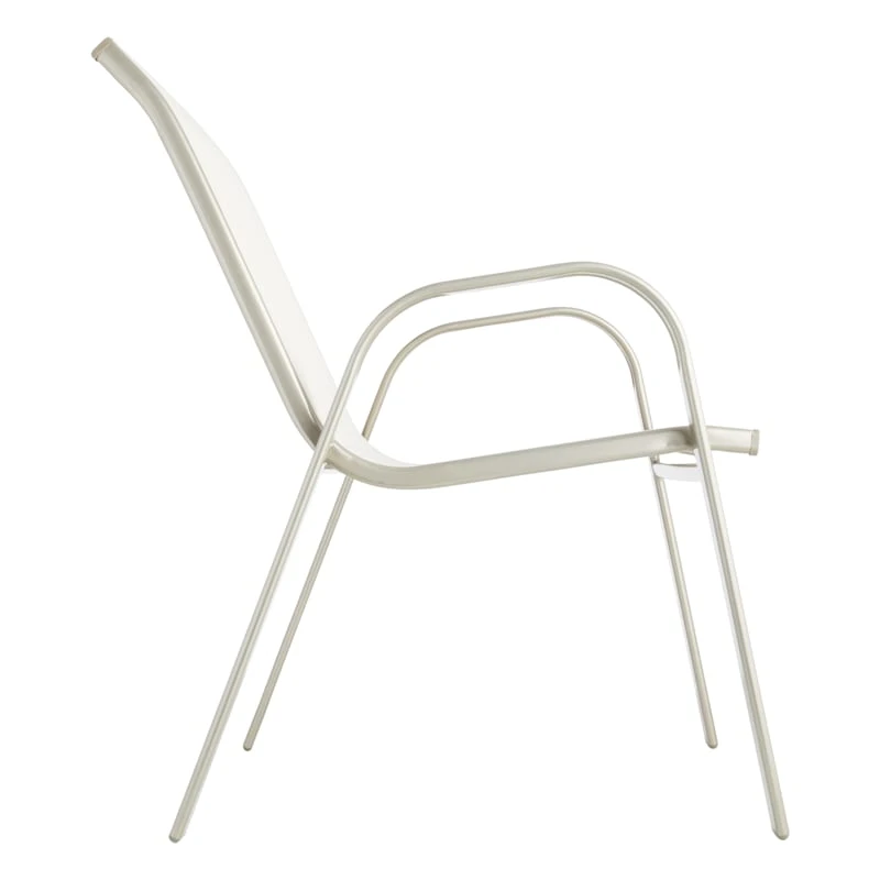 Escape the indoors and get outdoors with our stackable beige Sling patio chair. Buy in multiples and be sure to have enough outdoor seating for family and friends. This outdoor metal dining chair features a simple streamlined look with a metal frame and a comfortable mesh fabric that’s breathable. These stacking chairs will last even longer if protected from the elements. Pair with any patio table or garden stool and enjoy the great outdoors to the fullest.