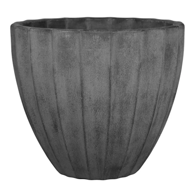 Highlight your green thumb and showcase your annuals and perennials at your front door or add a touch of festive foliage to the deck with our simple yet stylish planter. More than just a spot to display your gardening skills, this wonderful 13in. scalloped black concrete-look pot offers a wonderful artistic appearance with its rippled scallop surface and curvy shape. Designed to live indoors or on a covered patio, this synthetic planter is ready and waiting to make your plants pop.