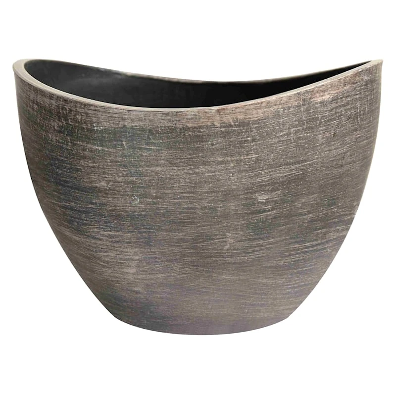 Highlight your green thumb and showcase your annuals and perennials at your front door or add a touch of festive foliage to the deck with our simple yet stylish planter. More than just a spot to display your gardening skills, this wonderful 16.5in. bronze metals wave planter offers a wonderful artistic appearance with its weathered surface and wave-like shape. Designed to live indoors or on a covered patio, this plastic planter is ready and waiting to make your plants pop.