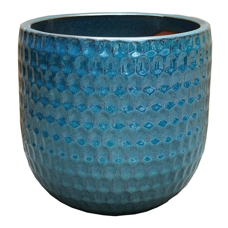 Add a touch of artistic interest to your patio plantings with our 13in. forest green Corey ceramic planter. More than just a spot to display your gardening skills, this wonderful glazed pot creates a striking display with its beautiful dimpled details. Designed to live indoors and out, it’s ready to make your plants pop.