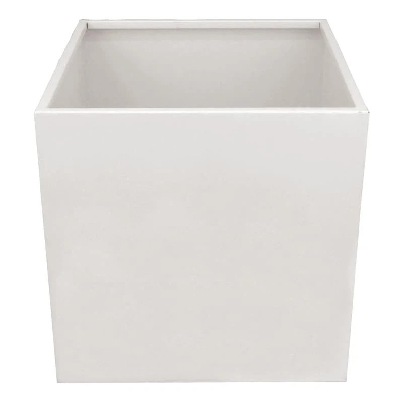 Highlight your green thumb and showcase your annuals and perennials at your front door or add a touch of festive foliage to the deck with our simple yet stylish planter. More than just a spot to display your gardening skills, this wonderful 16in. square white metal planter offers a wonderful artistic appearance with its simple solid surface and modern square motif. Designed to live indoors or on a covered patio, this white painted metal pot is ready and waiting to make your plants pop.