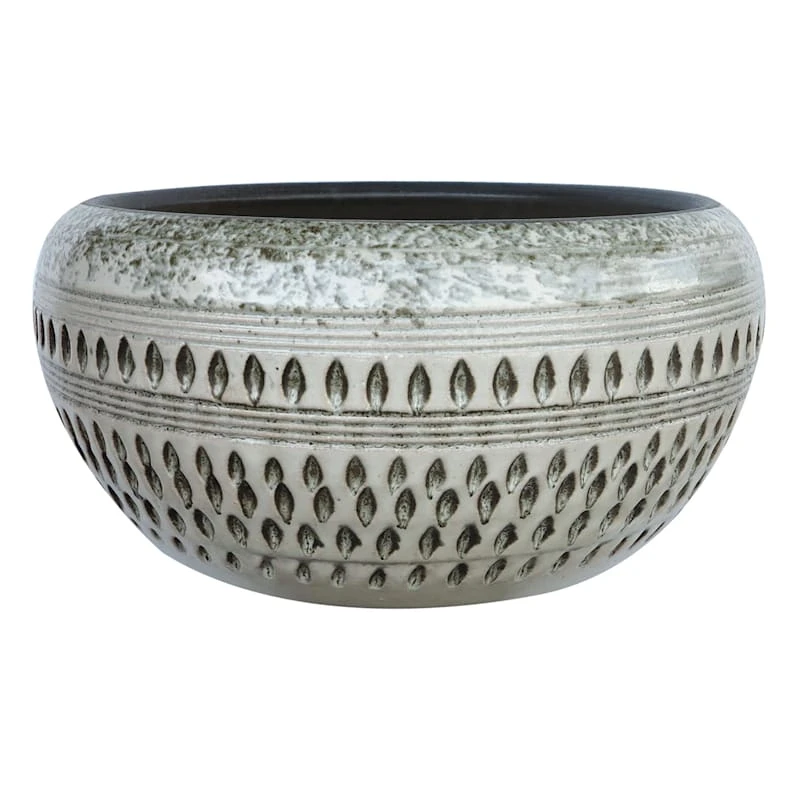 Add a touch of artistic interest to your patio plantings with our white Cyber bowl ceramic pot. More than just a spot to display your gardening skills, this wonderful 7x13in. glazed planter has an interesting dotted sketch appearance with its low bowl shape and mottled surface. Designed to live indoors or out, it’s ready to make your plants pop.