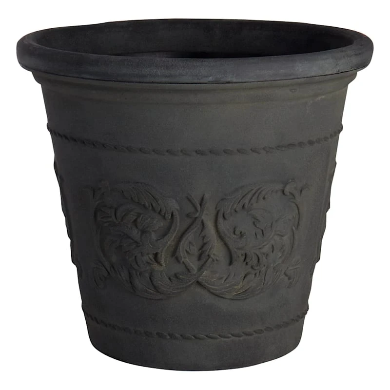 Highlight your green thumb and showcase your annuals and perennials at your front door or add a touch of festive foliage to your deck with our 20in. round plastic planter. More than just a spot to display your gardening skills, this embossed tarnished copper colored pot has a regal appearance with its wonderful scrolled medallion design. Created to live indoors or out, it’s ready to make your plants pop.