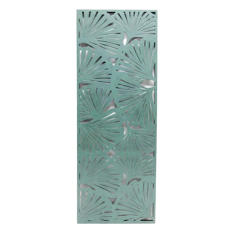 Found & Fable is a new collection that lets you explore what’s right around the corner. Choose your own adventure every day. Savor it all and say yes to what comes next—exclusively At Home. Give your decor a fresh splash with this green metal gingko wall plaque. Decorative accessories are a great way to make a statement and make a quick update. Hang this 14x36in. cutout gingko leaf plaque or lean it on a console staged with other decorative items then sit back, relax and enjoy your peaceful vibe.