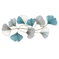 Found & Fable is a new collection that lets you explore what’s right around the corner. Choose your own adventure every day. Savor it all and say yes to what comes next—exclusively At Home. This multicolor metal gingko leaf wall decor is an easy way to add a pop of charm to any room. Bring new life to your patio, kitchen or den with this interesting 40x20in. metal centerpiece wall art. Featuring blue, white, silver and gold coloration, this branch and leaf figural art will bring years of enjoyment and will add to your decorative ambiance.
