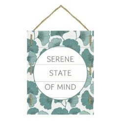 Found & Fable is a new collection that lets you explore what’s right around the corner. Choose your own adventure every day. Savor it all and say yes to what comes next—exclusively At Home. Get ready for the season with our 12x15in. “Serene State of Mind” wood slat pallet wall sign. Each piece has a green, white and grey gingko leaf painted finish and rope detailing making it durable for both indoor and outdoor use. Whether it’s used as a wall hanging or tucked into shelf decor, this sign creates a warm feel while adding depth to your space. This wall decor makes an excellent addition to any room and is the perfect decoration for spring and summer.
