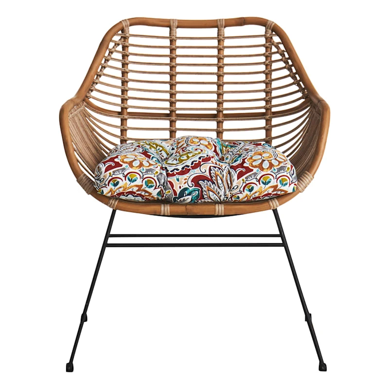 Found & Fable is a new collection that lets you explore what’s right around the corner. Choose your own adventure every day. Savor it all and say yes to what comes next—exclusively At Home. Add a little exotic flair to your outdoor entertaining! A curvy silhouette and an open wicker weave make this natural wicker chair a real stunner. Our Wates natural all-weather club chair features beautiful allover rattan construction on a black steel frame and base, with a charming yet minimalistic structure that has incredible stability and exquisite, global design.