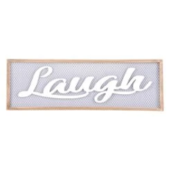 Our charming horizontal wood and wire sign features the message “Laugh{ carved and placed on a rustic chicken wire-look background. This wood and manufactured wood sign is finished in a natural and white hue that gives it authentic antique, old-world charm.