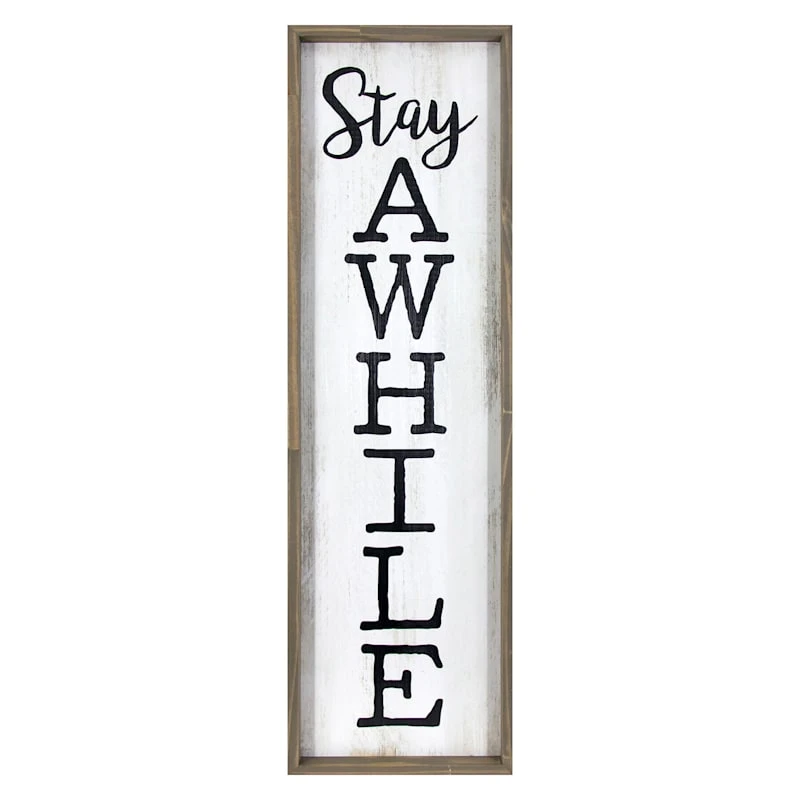 Framed Stay Awhile Textured Wooden Outdoor Wall Sign, 12×42