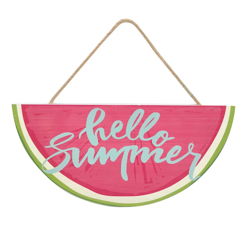 Hello Summer Watermelon Hanging Outdoor Wall Sign, 10"