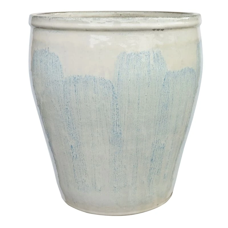 Add a touch of artistic interest to your patio plantings with our blue and white Berlin ceramic pot. More than just a spot to display your gardening skills, this wonderful 13in. glazed planter has a sleek brushstroke appearance with its slightly rounded shape and shiny surface. Designed to live indoors, it’s ready to make your plants pop.