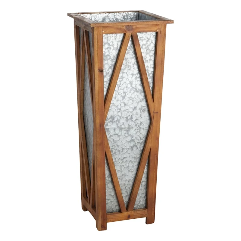 Honeybloom Galvanized Metal & Wood Tall Planter, Extra Large
