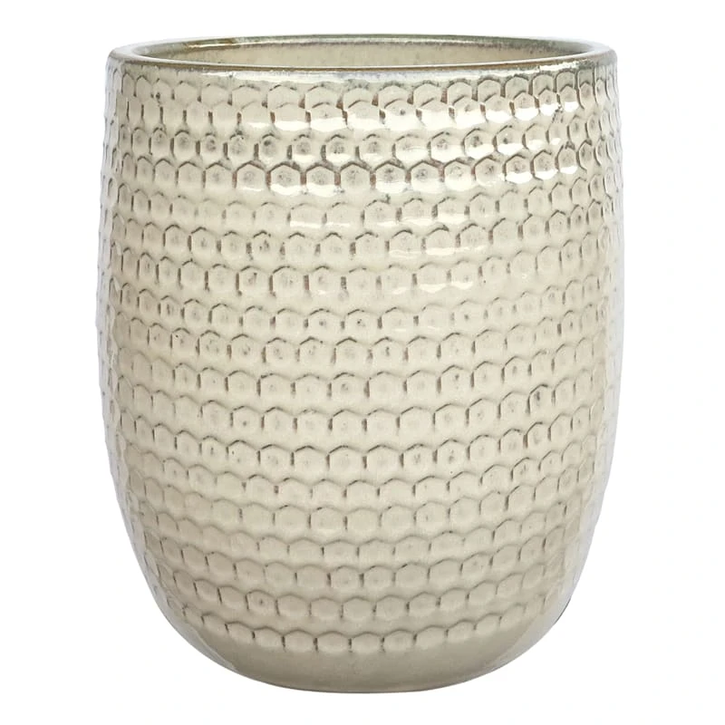 Highlight your green thumb and showcase your annuals and perennials at your front door or add a touch of festive foliage to the deck with our simple yet stylish planter. More than just a spot to display your gardening skills, this wonderful 12in. tall white honeycomb planter offers a wonderful artistic appearance with its rustic white ceramic surface and dimpled honeycomb motif. Designed to live indoors or on a covered patio, this antique white ceramic pot is ready and waiting to make your plants pop.