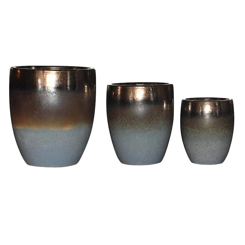 Indoor 2-Tone Brown & Blue Reactive Glazed Ceramic Pot, 7"