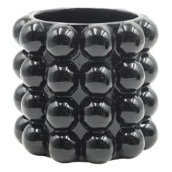 Highlight your green thumb and showcase your annuals and perennials at your front door or add a touch of festive foliage to the deck with our simple yet stylish planter. More than just a spot to display your gardening skills, this wonderful 7in. black bubble ceramic pot offers a wonderful artistic appearance with its traditional cylindrical body and large bubble surface. Designed to live indoors or on a covered patio, this ceramic pot is ready and waiting to make your plants pop.