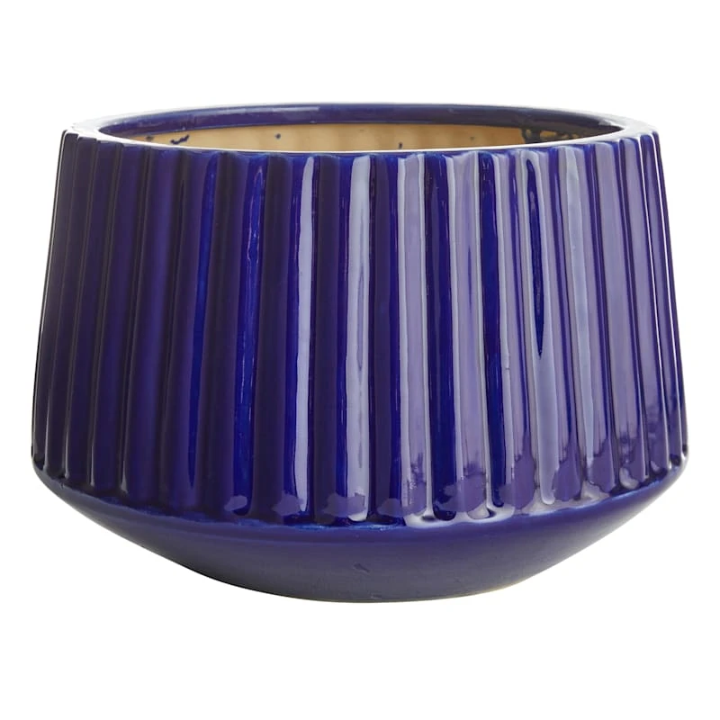 Indoor Blue Glazed Fluted Pot, Large