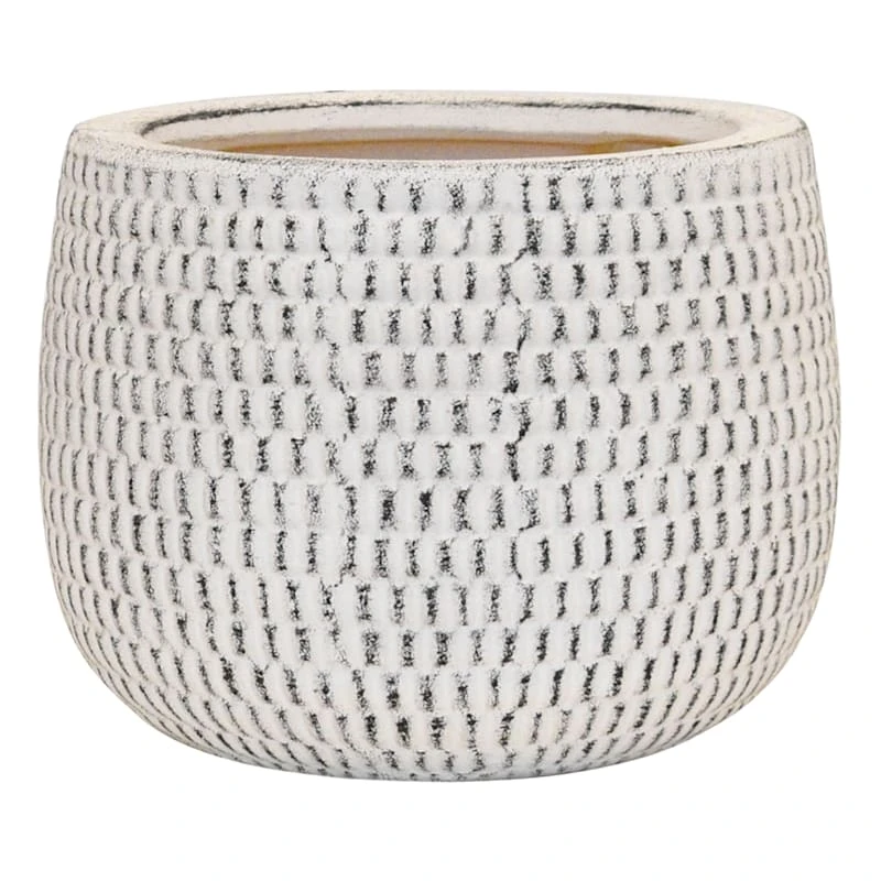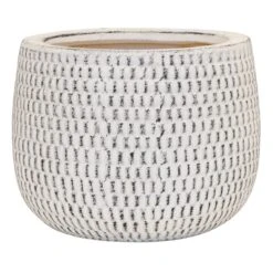 Indoor Honeycomb Textured Whitewashed Ceramic Pot, Large