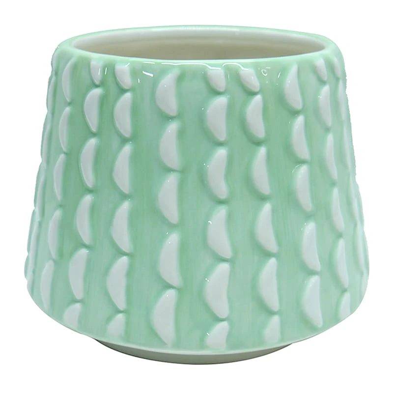 Highlight your green thumb and showcase your annuals and perennials at your front door or add a touch of festive foliage to your deck with our stylish light green textured 6in. ceramic pot. More than just a spot to display your gardening skills, this glazed ceramic pot has a sleek contemporary appearance with its wonderful design. Created to live indoors or out, it’s ready to make your plants pop.