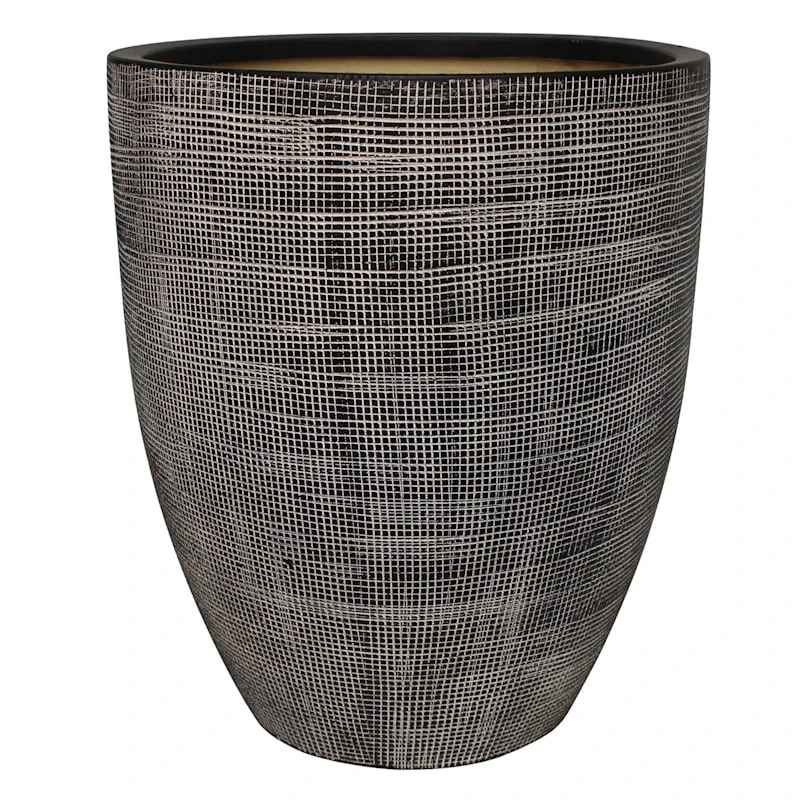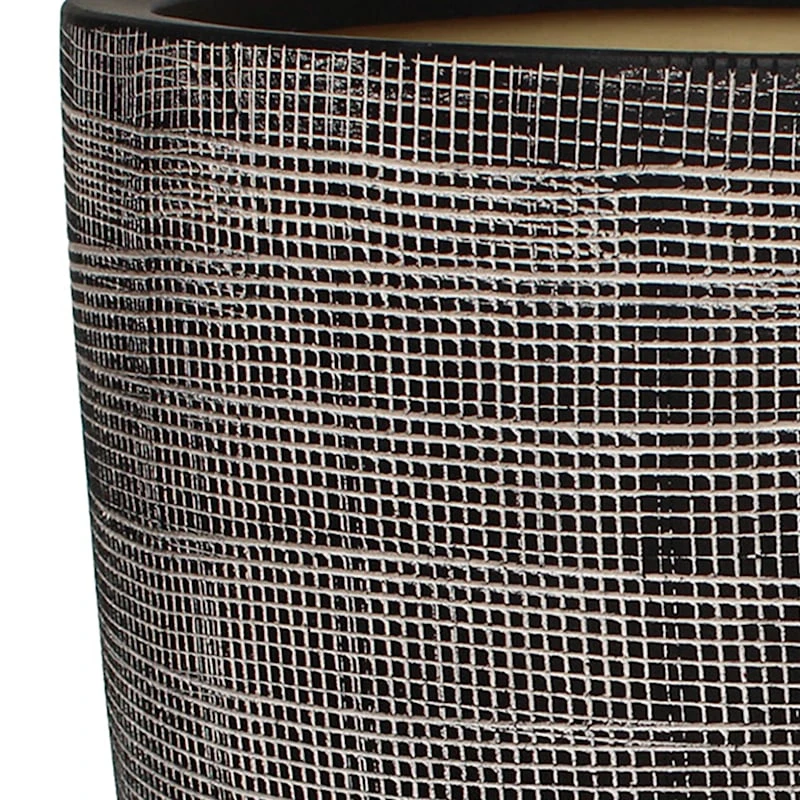 Add a touch of architectural interest to your patio plantings with our Grid etched ceramic planter. More than just a spot to display your gardening skills, this wonderful black and tan planter offers a sleek contemporary appearance with its curved shape and etched look surface. Designed to live indoors or out, it’s ready and waiting to make your plants pop.