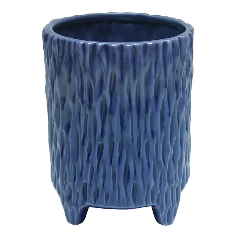 Highlight your green thumb and showcase your annuals and perennials at your front door or add a touch of festive foliage to your deck with our stylish 6in. tall navy blue ceramic pedestal planter. More than just a spot to display your gardening skills, this unusual footed pot has a bark-like appearance with its wonderful brilliant blue glaze. Created to live indoors or out, it’s ready to make your plants pop.