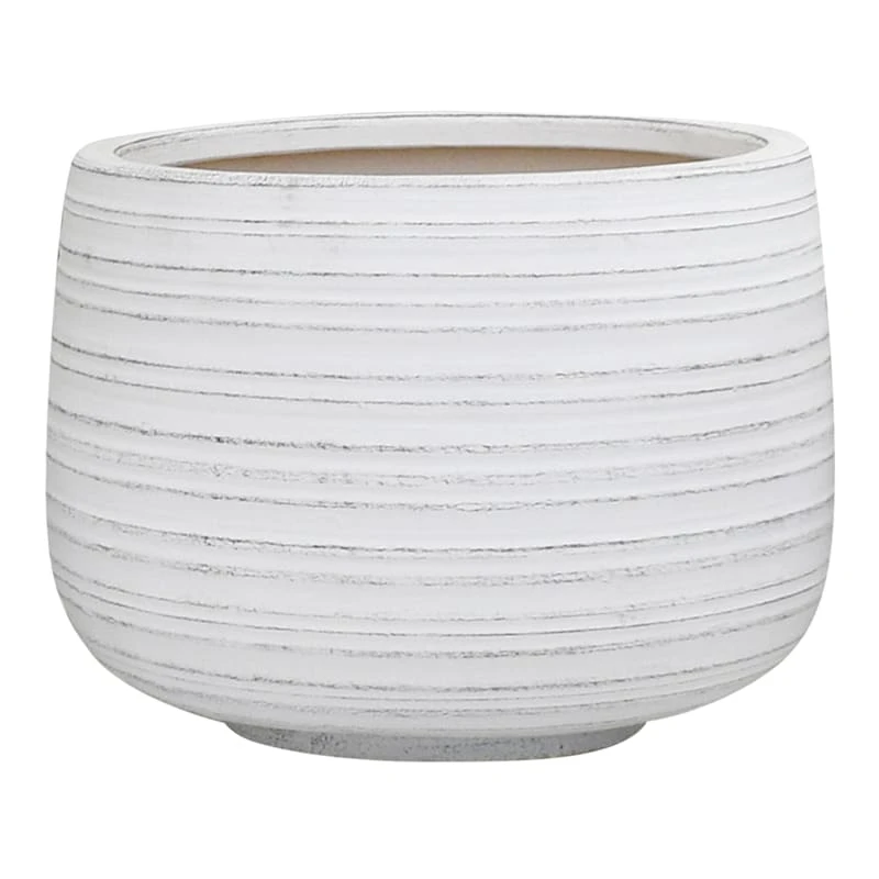 Indoor Whitewashed Horizontal Lines Ceramic Pot, Large