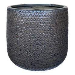 Add a touch of artistic interest to your patio plantings with our mist black Isis ceramic pot. More than just a spot to display your gardening skills, this wonderful 12in. glazed planter has an interesting diamond dot appearance with its slightly rounded cylindrical shape and glazed surface. Designed to live indoors or out, it’s ready to make your plants pop.