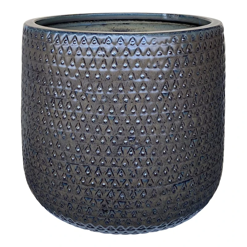Add a touch of artistic interest to your patio plantings with our mist black Isis ceramic pot. More than just a spot to display your gardening skills, this wonderful 8x9in. glazed planter has an interesting diamond dot appearance with its slightly rounded cylindrical shape and glazed surface. Designed to live indoors or out, it’s ready to make your plants pop.