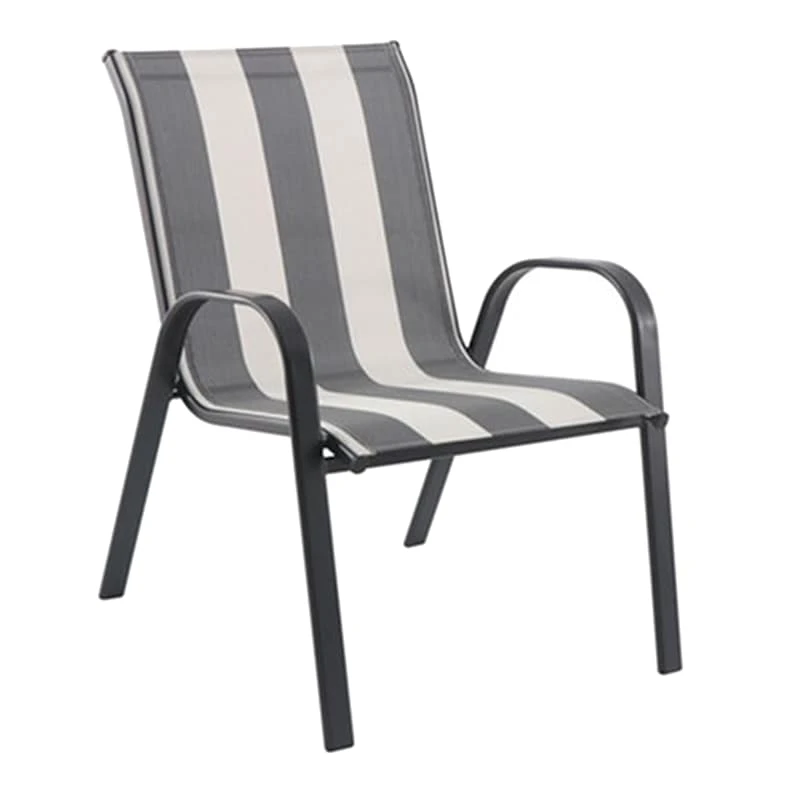 Laila Ali brings the mindset of a world-champion athlete and passion for healthy living to create a modern lifestyle collection with serious style only found At Home. Escape the indoors and get outdoors with our stackable black and white striped sling patio chair. Buy in multiples and be sure to have enough outdoor seating for family and friends. This outdoor metal dining chair features a simple streamlined look with a black metal frame and a comfortable mesh fabric that’s breathable. These stacking chairs will last even longer if protected from the elements. Pair with any patio table or garden stool and enjoy the great outdoors to the fullest.