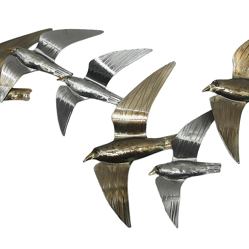 Add a pinch of fun to your garden with our 15×30.5in. natural metal birds wall decor. Created with love, this wonderful piece features a natural metallic flock of flying birds motif. Everyone will enjoy the nice welcome. Made of tonal metal, this wall decor is designed to greet guests all season long.