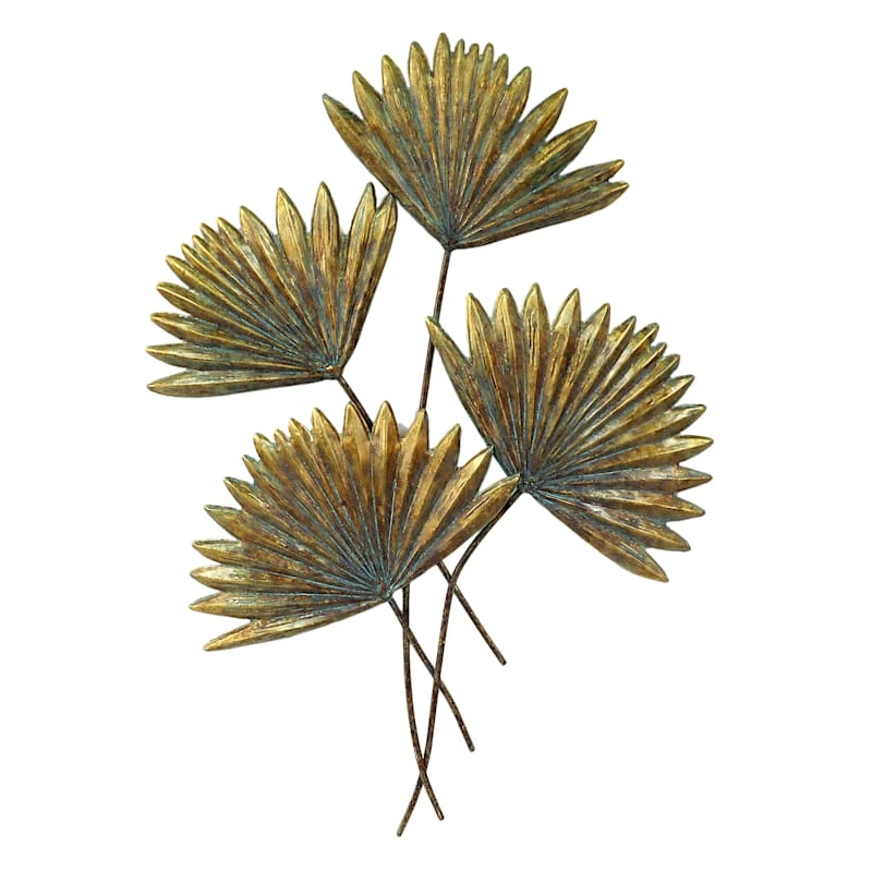 Add a pinch of fun to your garden with our 33in. metal plants wall decor. Created with love, this wonderful design features a lightly tarnished metallic leaf motif. Everyone will enjoy the nice welcome. Made of golden brown metal, this hanging wall decor is designed to greet guests all season long.