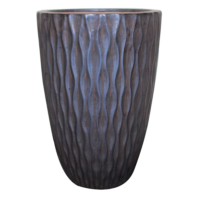 Add a touch of artistic interest to your patio plantings with our mist black quilted-look ceramic planter. More than just a spot to display your gardening skills, this wonderful 12x19in. pot has a cool appearance with its cylindrical shape and quilted chain link like surface. Designed to live indoors or out, it’s ready to make your plants pop.
