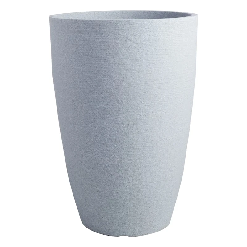 Highlight your green thumb and showcase your annuals and perennials at your front door or add a touch of festive foliage to the deck with our simple yet stylish planter. More than just a spot to display your gardening skills, this wonderful 21in. modern granite grey conic pot offers a wonderful artistic appearance with its simple textured surface and curvy round shape. Designed to live indoors or on a covered patio, this synthetic pot is ready and waiting to make your plants pop.