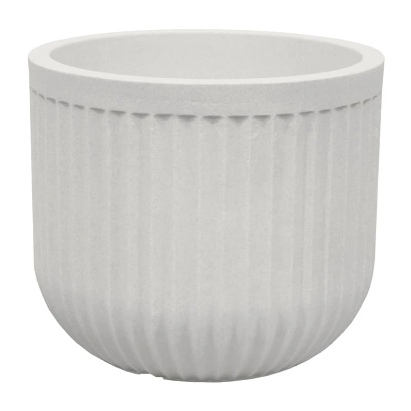 Add a touch of artistic interest to your patio plantings with our 17x22in. low fluted synthetic pot. More than just a spot to display your gardening skills, this wonderful off white planter offers a sleek stone-like appearance with its straight shape and contemporary, ribbed surface. Designed to live indoors or out, it’s ready and waiting to make your plants pop.