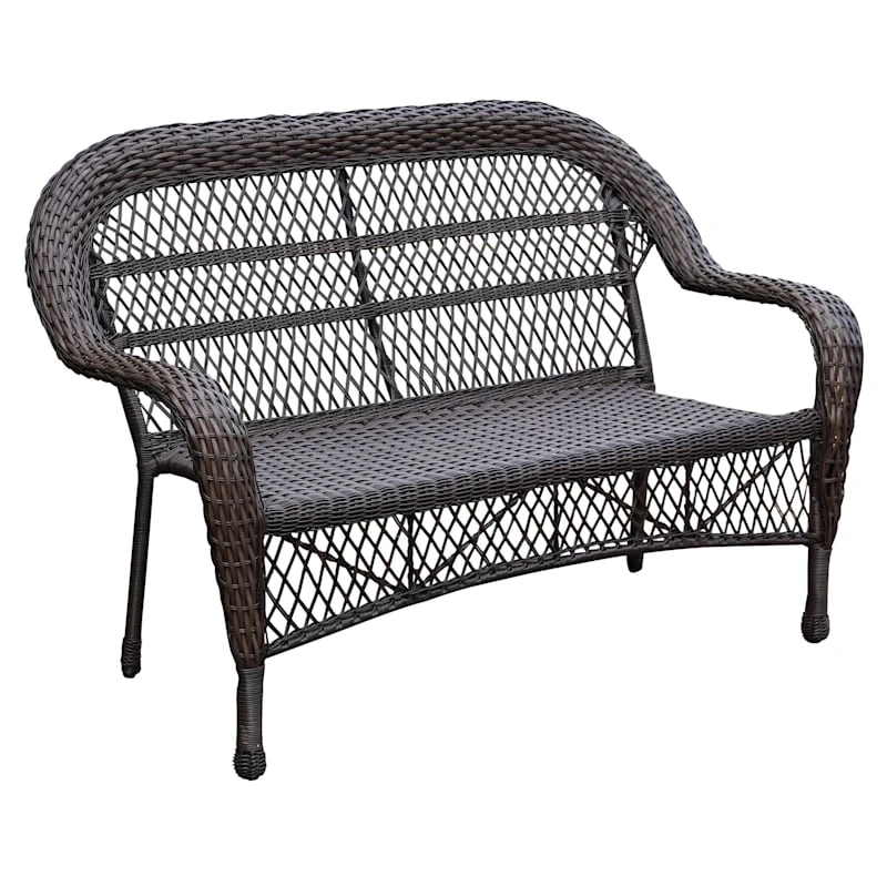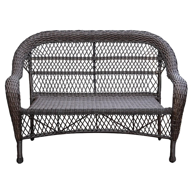 Outdoor Wicker Settee, Brown
