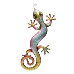 Delight any wall with our gecko wall decor. Wonderful iridescent hues accented with fun textures show off the intricate detail of the metal. Add a splash of summer to your outdoor space with this colorful metal lizard. Create a wonderful focal point on your exterior walls to add even more personality with this amazing wall decor piece. The wonderful gecko design will look stunning hung anywhere in your home, inside or out.