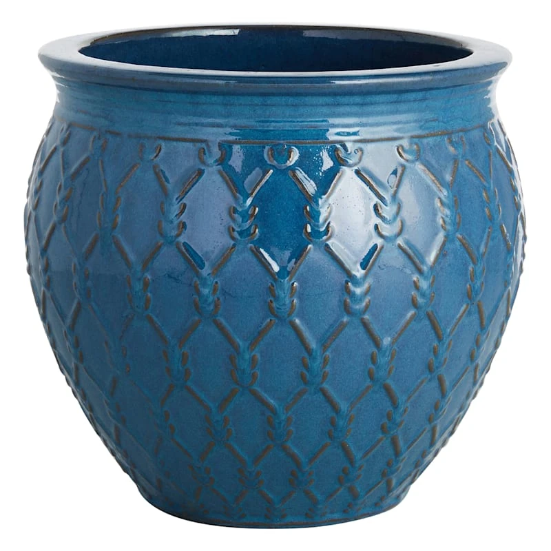A collection that lets everyone relax in style. Polished finishes and classic hues pair with fun finds. Providence is where elegant settings still feel comfortable and warm—exclusively At Home. Highlight your green thumb and showcase your annuals and perennials at your front door or add a touch of festive foliage to your deck with our stylish 17in. blue glazed barbed wire garden pot. More than just a spot to display your gardening skills, this unique planter has an exotic appearance with its wonderful design. Created to live indoors or out, it’s ready to make your plants pop.