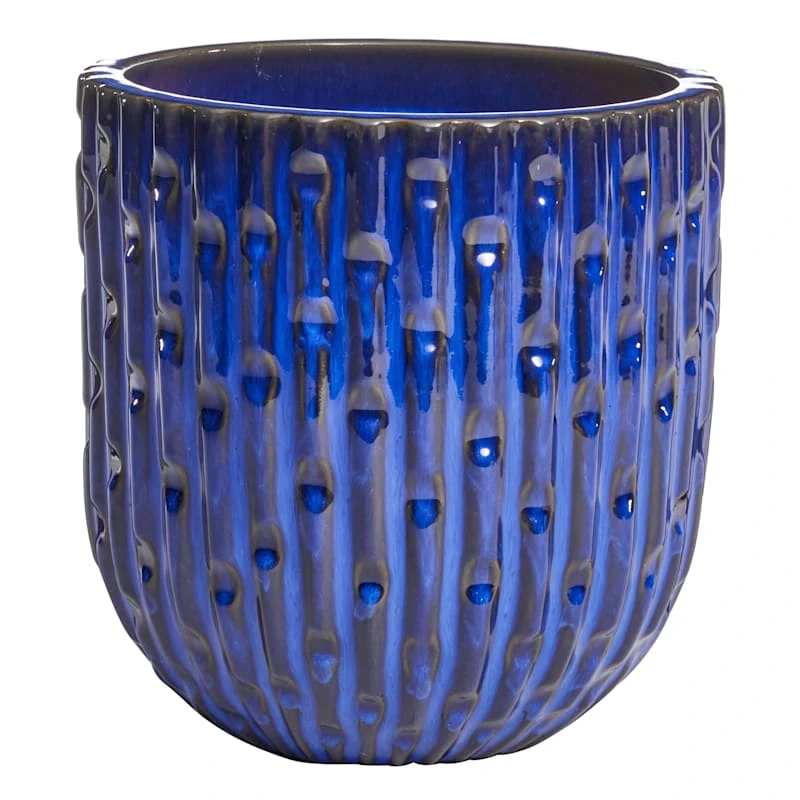 A collection that lets everyone relax in style. Polished finishes and classic hues pair with fun finds. Providence is where elegant settings still feel comfortable and warm—exclusively At Home. Highlight your green thumb and showcase your annuals and perennials at your front door or add a touch of festive foliage to your deck with our stylish 9in. blue round dimple garden pot. More than just a spot to display your gardening skills, this unique planter has an exotic appearance with its wonderful design. Created to live indoors or out, it’s ready to make your plants pop.