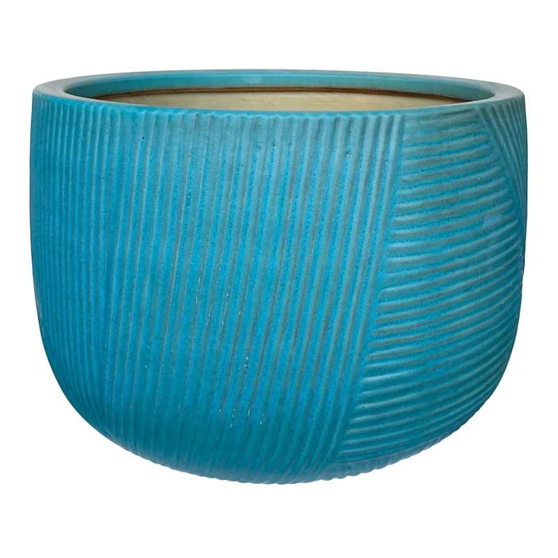 Add a touch of artistic interest to your patio plantings with our turquoise Reed ceramic pot. More than just a spot to display your gardening skills, this wonderful 19in. glazed planter has an interesting appearance with its rounded shape and ribbed surface. Designed to live indoors or out, it’s ready to make your plants pop.