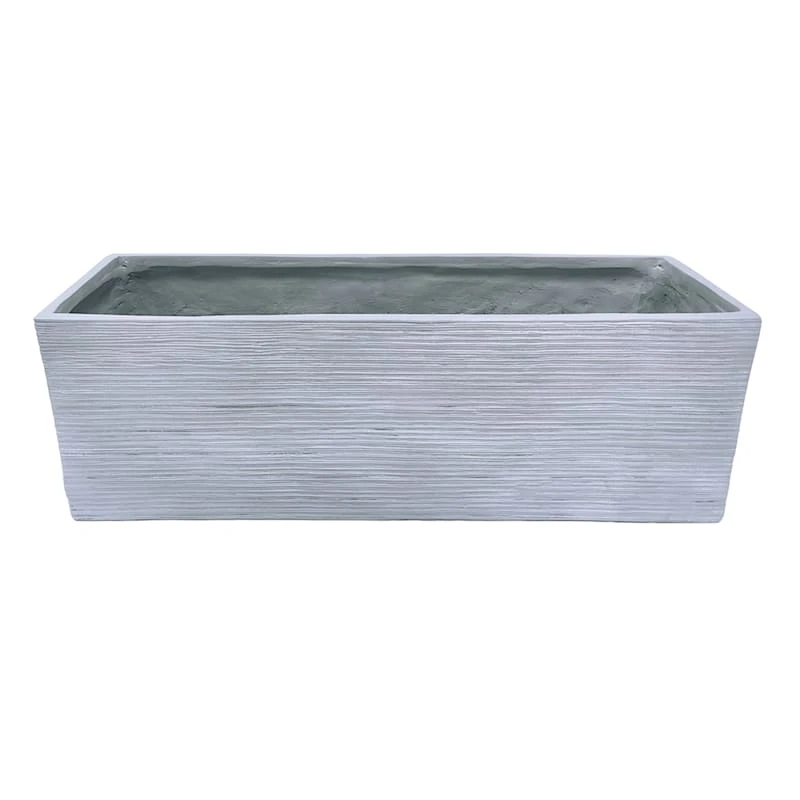 Highlight your green thumb and showcase your annuals and perennials at your front door or add a touch of festive foliage to your deck with our stylish 28in. white Riverside oblong planter. More than just a spot to display your gardening skills, this striated design concrete planter has a wonderfully textured appearance with its simple cement design. Created to live indoors or out, it’s ready to make your plants pop.