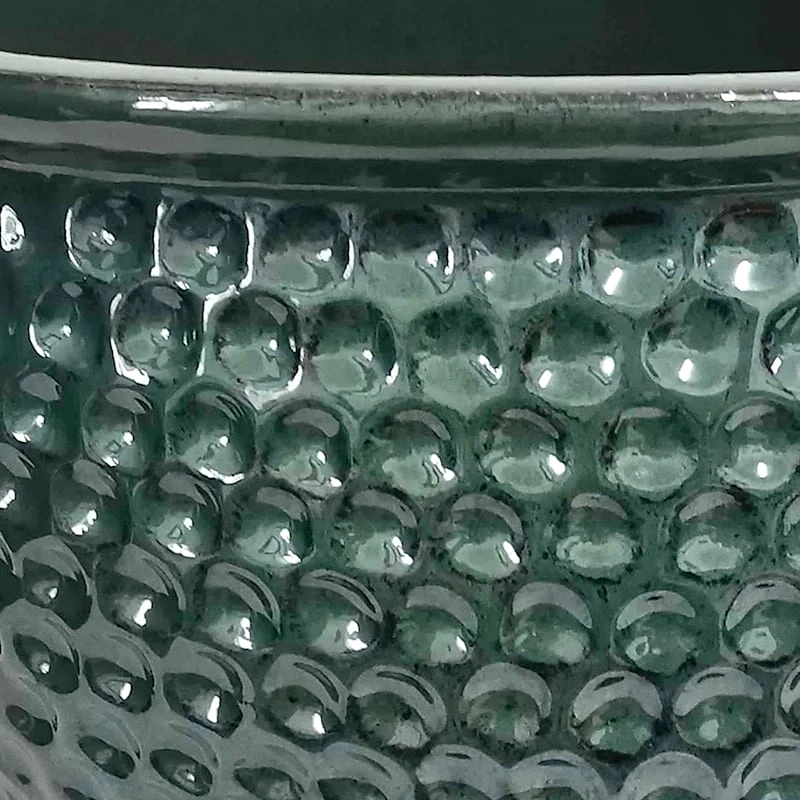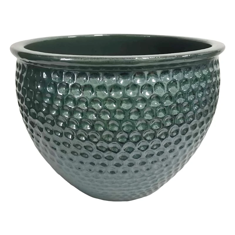 Highlight your green thumb and showcase your annuals and perennials at your front door or add a touch of festive foliage to your deck with our 12in. Rosalind turquoise ceramic planter. More than just a spot to display your gardening skills, this embossed allover dimpled pot has a charming appearance with its wonderful rimmed design. Created to live indoors or out, it’s ready to make your plants pop.