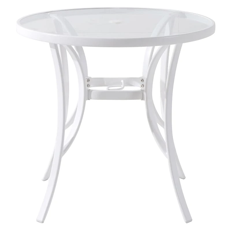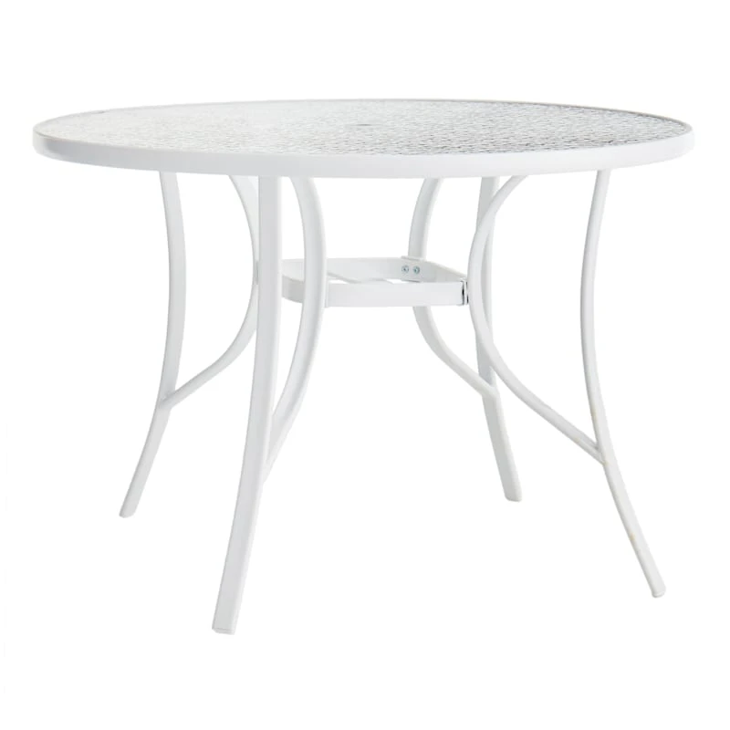 Round Water Wave Glass Top Outdoor Dining Table, White