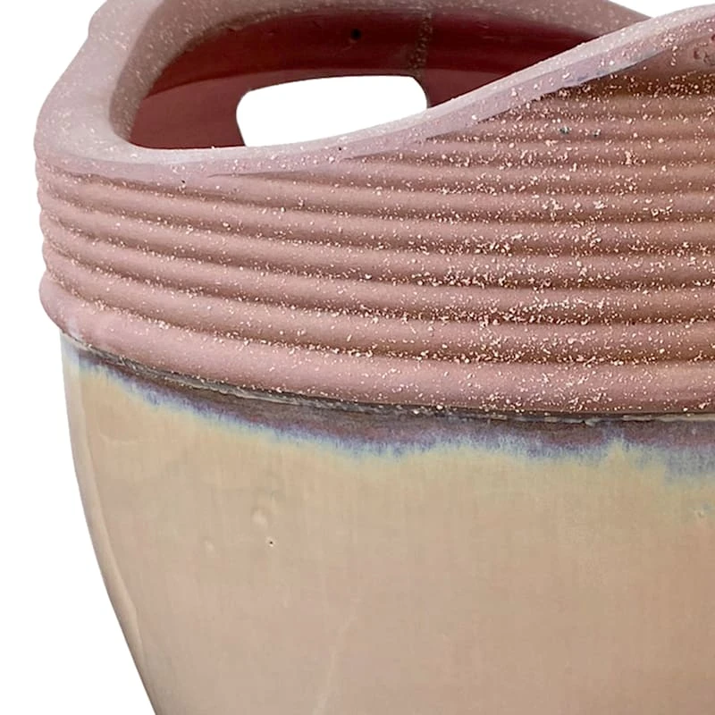 Highlight your green thumb and showcase your annuals and perennials at your front door or add a touch of festive foliage to the deck with our simple yet stylish planter. More than just a spot to display your gardening skills, this wonderful 14in. honey hued Sandy planter offers a wonderful artistic appearance with its two-tone colorway, built in handles and basket like motif. Designed to live indoors or on a covered patio, this honey tan ceramic pot is ready and waiting to make your plants pop.