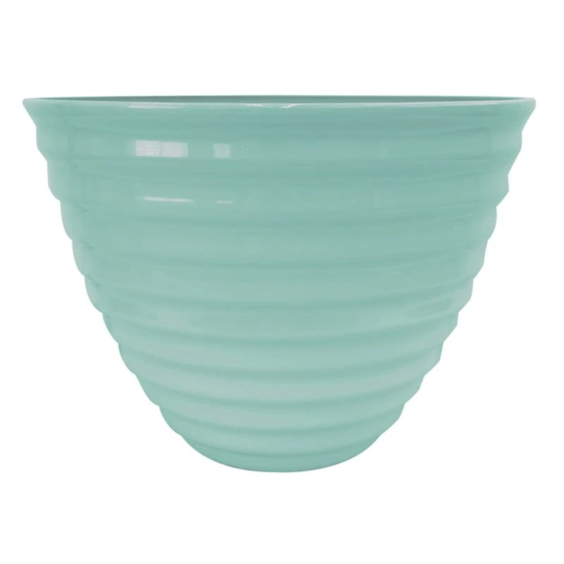 Highlight your green thumb and showcase your annuals and perennials at your front door or add a touch of festive foliage to the deck with our simple yet stylish planter. More than just a spot to display your gardening skills, this wonderful 14in. light blue Sunny Club beehive pot offers a wonderful artistic appearance with its solid shiny light blue surface and layered beehive shape. Designed to live indoors or on a covered patio, this plastic planter is ready and waiting to make your plants pop.