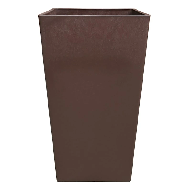 Tall Square Brown Planter, 21"